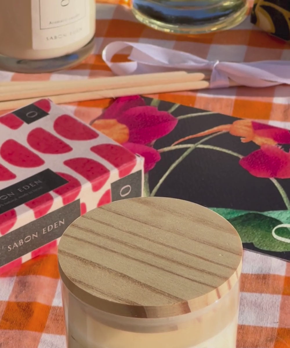 הנר עשוי מ100% שעוות סויה ושמנים אתרים טבעים